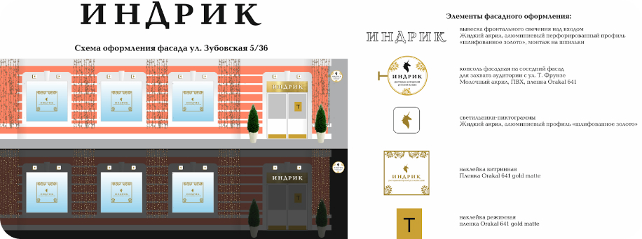 Например, вот так мы подготовили документ для согласования с заказчиком вывесок для ресторана Индрик.