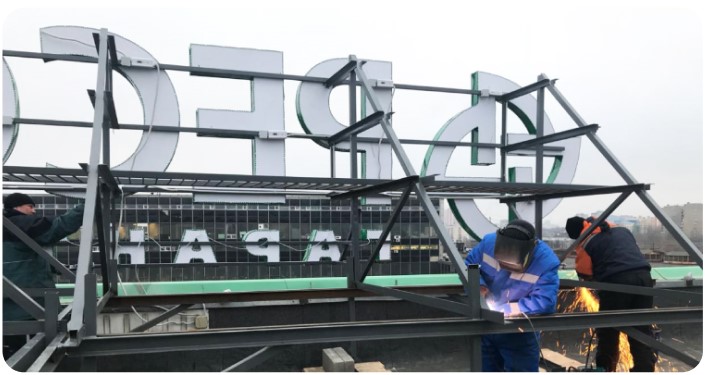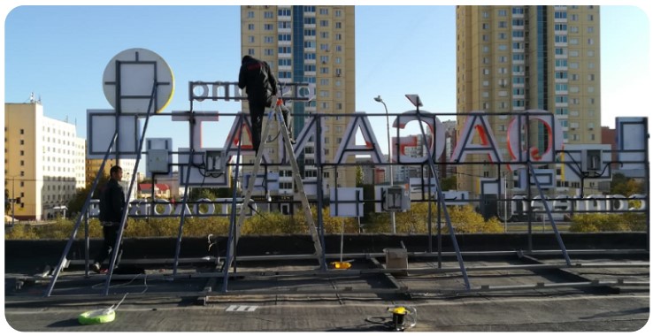 При заказе вывески для размещения на крыше или фасаде торговых центров вы должны понимать, что минимальным участием тут не обойтись. Если при заказе обычных вывесок, размещаемых на первых этажах или внутри помещений, мы опираемся на общепринятые стандарты изготовления и монтажа, то при выполнении заказов на крупногабарит происходит большая индивидуальная работа с множеством специалистов. И каждый из этапов работы контролируется не только менеджером, но и передается на согласование с заказчиком, во избежание недоразумений.